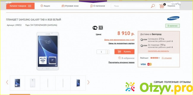 Товар выбран кладем в корзину. Забегая немного вперед хочется сказать я выбрала планшет фирмы самсунг т-285. Цена 8910, в других магазинах нашего города он стоит 9990 - экономия целая 1000 рублей все таки существенно!