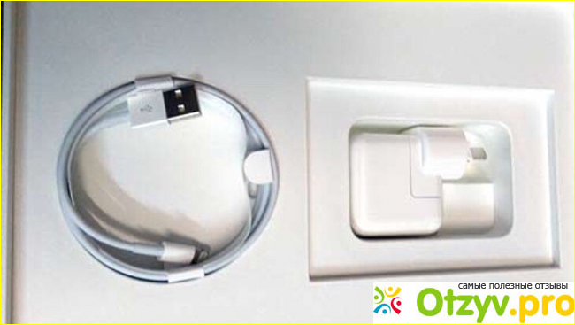 Помимо самого планшета, в комплекте шло зарядное устройство: адаптер и кабель. Эппловских адаптеров у нас уже хватает с головой, а вот с кабелями проблема - оригинальный шнур Apple очень быстро ломается из-за оплетки неважного качества. Поэтому советую сразу закупить адаптеры впрок.