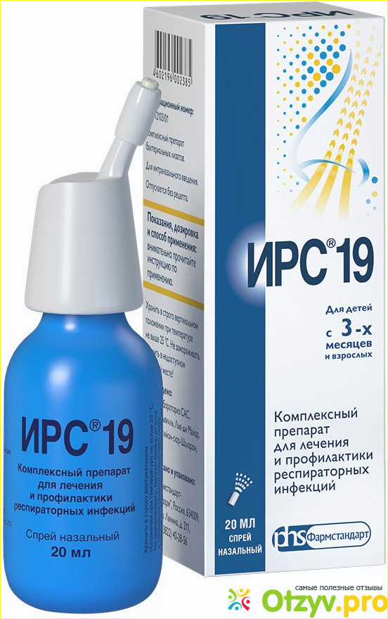 Производит его компания "Фармстандарт". Форма выпуска в виде назального спрея. "ИРС 19" при насморке, отите, при легочных заболеваниях. Он повышает специфический и неспецифический иммунитет. Подходит для детей уже с трехмесячного возраста. Хотя и не рекомендуется со время беременности. В комплекте к нему идет очень подробная инструкция по применению и описан принцип работы данного препарата. Стоит он около в среднем от 455 до 600 рублей, в зависимости от аптеки.