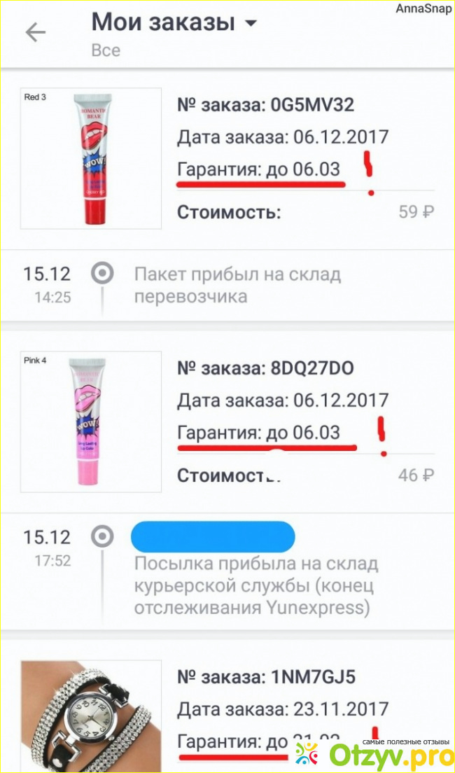По поводу возврата денег: гарантийный срок, в течении которого должен придти товар - 60 дней, то есть по истечении этого времени на главной странице высветится окно "Получили товар", я нажала нет, после чего появилось сообщение, что в течении 3-х дней мне вернут деньги и ведь не обманули.