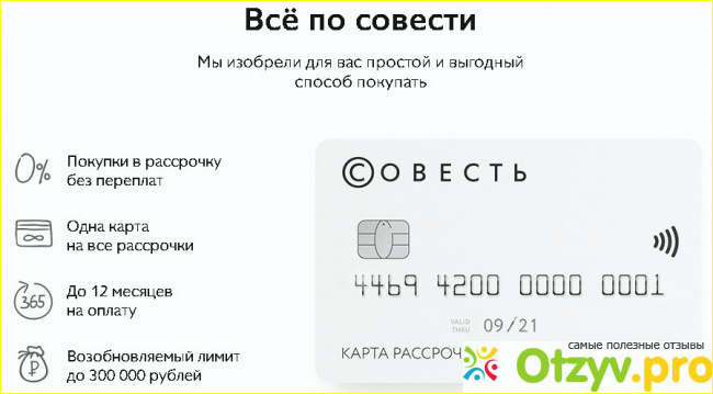 Доброго времени суток, всем читателям, заглянувшим на огонек на эту страничку. Свой сегодняшний отзыв я хочу посвятить карте рассрочки "Совесть" и рассказать вам о своих впечатлениях от нее.