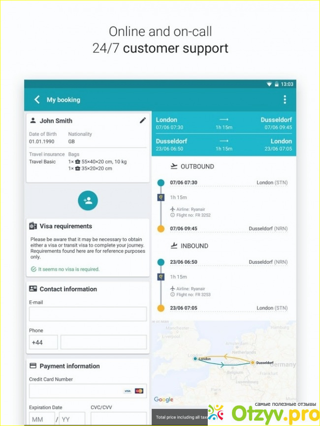 Теперь расскажу вам о своем собственном опыте покупки билетов на этом сайте. Мы подбирали вместе с мужем билеты по маршруту Омск - Симферополь. Нам сразу выдал нам три варианта: самые дешевые, самые быстрые и оптимальные, хотя там было еще куча всяких вариантов полета. Самый дешевый вариант был 56230 рублей (это за двоих человек уже сразу туда и обратно), правда нам пришлось бы делать две пересадки. Это для меня вообще тяжело и морально и физически, так как я очень боюсь летать, а тут еще и надо пережить несколько взлетов и посадок самолета. Поэтому я выбрала на более быстрый вариант с одной лишь пересадкой во Внуково, хотя стоило это немного дороже. Тем более она была всего трехчасовая. Мы с супругом спокойненько перекусили в аэропорту в местной кафешке (правда она особо не из дешевых оказалась), немного отдохнули и время ожидания пролетело довольно быстро. Отдали за этот рейс 65200 рублей. Правда, багаж и, ручная кладь в стоимость не входили, мы их оплачивали отдельно. Оплату за билеты производили моей кредитной карточкой, заминок с этим делом никаких не было, деньги списались моментально. Через полчаса мне на электронную почту пришло письмо с номером нашей брони и электронные билеты, мне оставалось только их распечатать на принтере и предъявить потом в аэропорту. Главное, при заполнении всех полей очень внимательно вводить паспортные данные. Лично я, тот еще параноик, поэтому на десять раз все перепроверяла, чтобы не допустить ошибку. Еще один существенный минус, что круглосуточная поддержка сайта у них только на английском языке. а его очень плохо знаю, да и консультация и для России по телефону только платный. Хотя я нашла просто и удобный вариант, получить ответы на все свои вопросы через мессенджер WhatsApp. Наш полет прошел отлично, без нареканий. Так что, думаю мы еще не раз воспользуемся услугами данного сайта, когда будет планировать наш следующий отпуск.