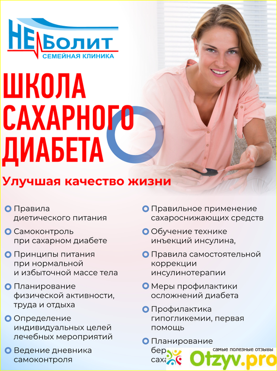 Здесь больных учат правильно питаться, правильно проводить самоконтроль, помощь в ведении дневника, профилактика осложнений сахарного диабета и многое другое.