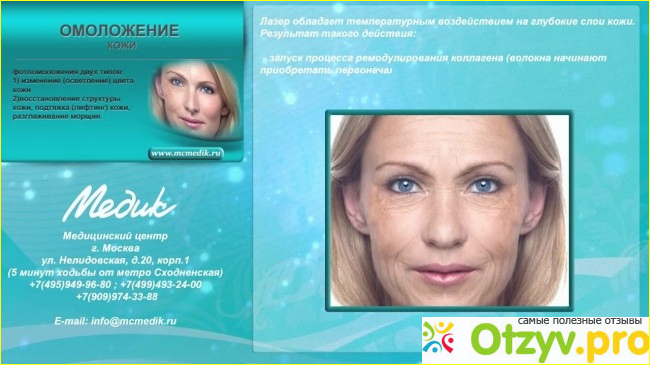 Данную клинику мне порекомендовала подруга, которая живёт в Москве уже некоторое время. Ольга пришла ко мне и продемонстрировала, как она выглядит. Глядя на её лицо и сравнивая, какая она была в прошлом, я была удивлена, она действительно помолодела. Она воспользовалась услугой, которая предоставляет клиника Медик. Называется эта услуга лазерная косметология.