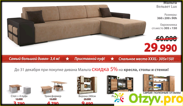 Как правило, В конце каждого года происходит распродажа остатков на складе. Это отличная возможность обновить мебель в квартире без особых на то затрат. Зашла на официальный сайт магазина, и тут же с первой страницы мне в глаза бросились низкие цены на распродаже. Я долго ли стала каталог, провела за компьютером более часа. Мне как раз нужен был новый диван, старый, отслужил нам верой и правдой не один год, уже пришел в негодность. Пора было найти ему замену. К тому же такое удачное с течение обстоятельств, как предновогодняя распродажа.