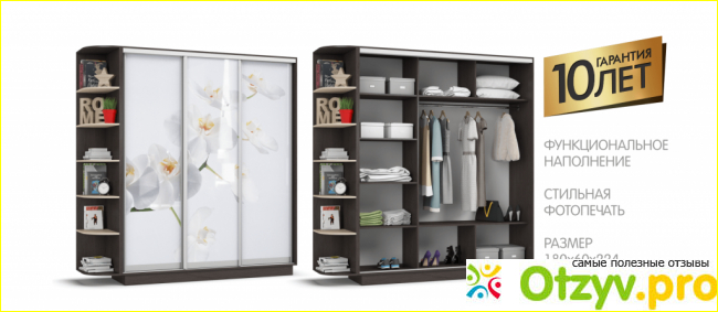 Это просто ошеломляющий шкаф, я в него влюбилась с первого взгляда, не мало важно то что он очень подходил к моей кроватке. Вы удивитесь как коричневый шкаф может подойти к белой кровати?Ответ прост, шкаф то коричневый но на стекле нанесен рисунок белой орхидеи! Это смотрится просто волшебно! Если вы не любите орхидеии и белый цвет вам не нравится, не беда вы можете выбрать другой рисунок и цвет. Этот шкафчик обошелся нам всего лишь в тринадцать тысяч рубей(13000р.). Внимание!!! Стартовая цена тридцать девять тысяч(39000р). Скорее спешите акции еще не закончились! На шкаф так же как и на кровать гарантия десять лет! Размеры:высота шкафа сто восемьдесят сантиметров, длинна двести двадцать четыре, глубина шестьдесят сантиметров. Внутри шкаф очень красивый, и полочки расположены очень удобно.