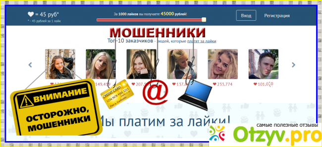 Вот такой вот типичный развод на деньги. И многие действительно на эти грабли наступают, ведь дураку понятно, что 45 рублей за один лайк - это что-то из области фантастики и вся статистика лайков на сайте просто накручена системой. 45000 рублей за какие то 1000 лайков??? Это где же такие расценки у нас. Вот владельцу данного ресурса желаю приобрести мозги и их уже включить, потому что на ваше фуфло нормальные люди реагировать не будут. И вообще таких людей надо сажать в тюрьмы, потому что очень большая аудитория глупых людей просто теряют свои деньги.