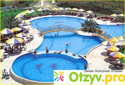 Бассейнов несколько. Начну рассказ с самого привлекательного и большого – основного бассейна. Он имеет необычную форму в виде трех лепестков цветка. Средина бассейна – остров и мостик. Для совсем маленьких – «лягушатник». Он удачно расположен возле детской площадки. Малыши могут чередовать игры на площадке и купание в маленьком бассейне. Для детей постарше имеется другой бассейн. В нем две горки. Но работали они не весь день, два часа до и столько же после обеда. Вполне достаточно, чтобы накататься. С экипировкой проблем нет. Шезлонги, матрасы – всего хватает на всех.