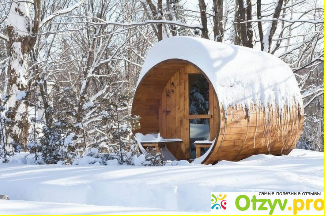 - Баня-бочка зимой требует больше времени и дров для нагрева, но при наличии обогревателя в предбаннике можно сократить расходы.