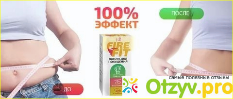 Производитель обещает что с помощью капель Fire Fit человек сможет сбросить до 20 килограмм всего лишь за один месяц. Эти капли прошли множественные клинические испытания и конечно же имеют сертификат качества. Fire Fit способен притуплять чувство голода, а также значительно снижает аппетит. Применение данных капель совершенно не опасно для здоровья человека, ведь в составе только натуральные качественные компоненты, которые не вредят здоровью. Этот препарат позволяет вывести не нужные жировые отложения за достаточно не продолжительный период времени.