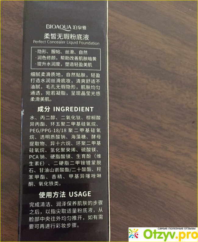 Надпись на китайском гласит, что средство не закупоривает поры, оставляя их дышать, маскирует дефекты, а также питает и увлажняет кожу.