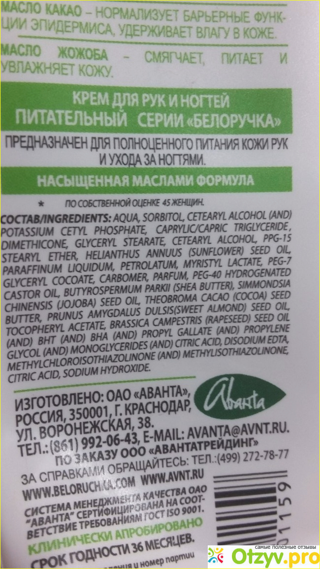 Упаковка его - это обычная пластиковая туба. Выдавливать крем из нее довольно удобно и он поступает дозировано. Удобно, что сам колпачок на отстегивающийся, а не откручивающийся. Так что его точно не потеряешь. Да и дизайн тюбика очень симпатичный и на него сразу же обращаешь свое внимание. В открытом виде срок годности крема составляет полгода, а в закрытой упаковке до тридцати шести месяцев. Производитель у этого крема, кстати наш отечественный, выпускает его фирма под названием "Аванта".