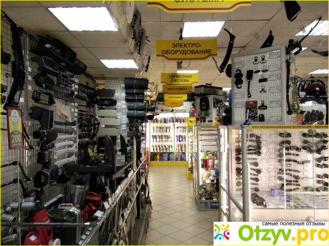 Действительно, ассортимент в магазине большой. Представлено много разных масел, запчастей и деталей. Внутри магазина – просторно.