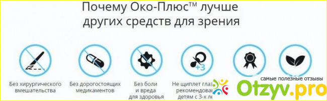 Препарат является альтернативным решением проблем со зрением, так как лечение при помощи Око плюс помогает избежать лазерной коррекции и добиться здоровья глаз без применения других операций.