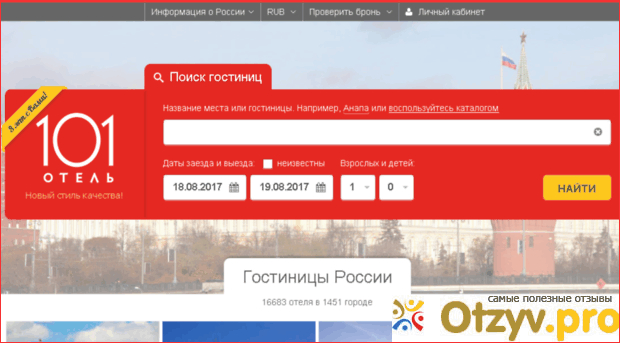Нормальный сайт. Не могу сказать что он какой- то из ряда вон выходящий, но и не самый зачуханый. Интерфейс сайта мне напомнл наш родной ржд. Все красно- белое) Ну или под Спартак косят) На первой страничке вам предлагаю остановиться в каком -нибудь российском отеле. Внизу странички расположены иностранные отели. В общем, в строку вбиваете город, в котором планируете остановиться и даты заезда-отъезда. Так же прописываете сколько взрослых и детей будет жить в номере. Далее кнопка "НАЙТИ". И сайт вам предложит все имеющиеся варианты. Вариантов не так много, как на том же букинге, но есть. По данным сайта, в России они предлагают 16990 отелей.
