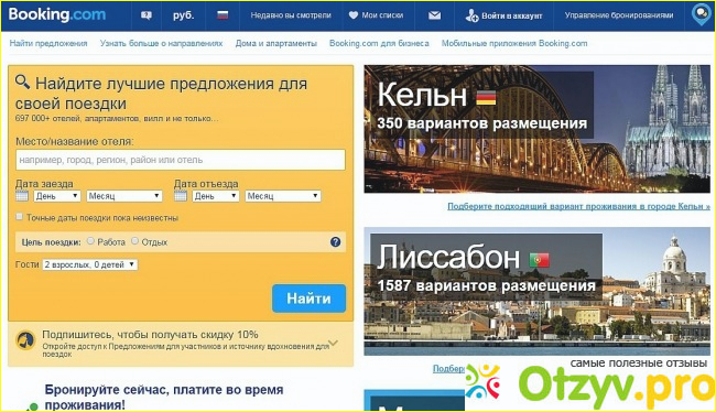 Сайт букинг ком создан для обычных туристов, путешественников и бизнесменов, которые хотят самостоятельно управлять своими поездками. сайт имеет очень удобный интерфейс, позволяющий быстро просматривать все существующие предложения по проживанию в том или ином городе. Букинг ком позволяет быстро определить наиболее выгодные цены, рассмотреть обстановку в предлагаемых номерах, квартирах. Кроме того, на букинге можно прочесть очень много реальных отзывов людей, живших в том или ином месте. Все отзывы реальны, так как букинг довольно авторитетный сайт.