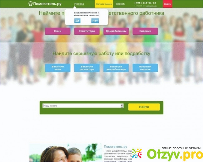 В настоящее время подобных проблем нет. Вам не нужно ломать голову особо, над поисками нянь, репетиторов, сиделок и домработниц. За вас это сделают другие люди.. Вам остается только платить. Часто бывает, что лучше платить, чем маяться с нерадивыми работниками. Интернет в настоящее время прочно занимает свои позиции и в этом направлении. Множество всевозможных сайтов помогут Вам найти все что угодно, даже "прыщик на теле у слона". Один из таких сайтов -Помогатель. ру. О нем и речь..