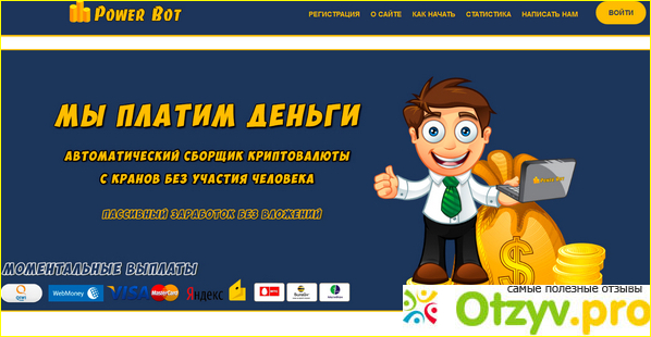 И поскольку за последние годы наука, техника и прогресс уверенно шагнули далеко вперед, на десятки ходов, то интернет становится для обычного человека не только тем местом де можно интересно провести время общаясь с людьми, просматривая фильмы и видео, прослушивая любимую музыку либо же играя в различные интересные игры. Также интернет для многих стал местом для заработка денег, причем для большинства уверенных пользователей местом заработка больших денег. В связи с этим в сети стало появляться все больше и больше мошенников, которые наживаются на простом человеческом желании жить лучше и рассчитывая на наивность нагло и бессовестно наживаются на них. При чем наживаются довольно таки не плохо, до сих пор только не понятно почему такие сомнительные организации все еще продолжают спокойно и даже успешно существовать, ведь каждый день находится как минимум несколько десятков желающих, по своей собственной воле и с наивным убеждением получить в десять раз больше отданного просто так, заплатить деньги в никуда и получить в ответ всего лишь мифическую надежду которая в итоге оказывается элементарным обманом. Одним из таки проектов обманок является Power Bot.