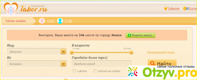 Со стороны молодых людей начинается-у нее наверняка есть парень, а возможно, вообще муж. Тем более сложно познакомиться, когда ты встаешь утром, едешь на работу ( к примеру на своей машине), пашешь до шести вечера, а потом опять домой, и максимум забегаешь за продуктами, в какой-нибудь магазин где проходимость не особо высокая. В таком случае какие-то умные люди и придумали сайты для знакомств. И в данном вопросе все прекрасно, очень много людей желают познакомится в интернете, как оказывается среди нас много одиноких людей, точнее людей без своей второй половинки. Но опять же встает острая проблема, это то что, очень много мошенников на сайте. И вообще на некоторых сайтах знакомств, как будто притон с поиском проституток. Это действительно острая проблема, ведь хорошие сайты не допускают такого. Только такой хороший сайт дано в начале найти, так и я наткнулась в интернете на надежный сайт знакомств, с практически бесплатными функциями (плата берется если ты поднимаешь свою анкету в топе, но об этом сразу пишут). База у сайта "Табор. ру" просто огромная, сам по себе сайт прекрасный, удобный, простой и одновременно стильный. Все о данном сайте читайте ниже.