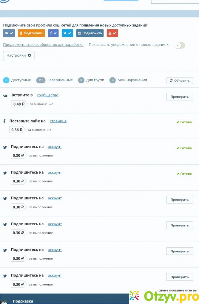 Всё предельно просто, заходите на сайт, регистрируетесь, дальше привязываете свои аккаунты и задания тут же будут вам предложены.