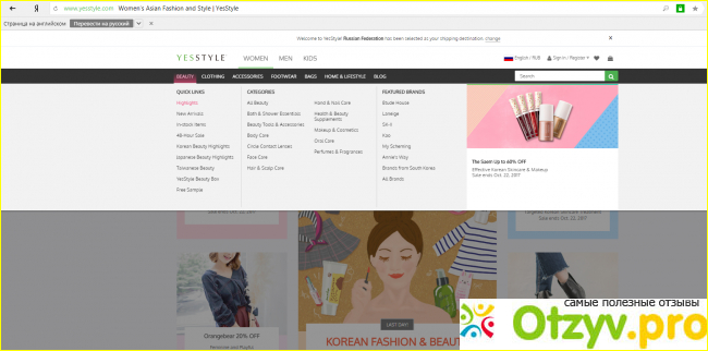 Сайт не адаптирован под русскоязычных пользователей, т. е. для граждан России он по умолчанию на английском. Если вы не владеете ни одним из языков, которые можно выбрать кликнув по флагу страны на сайте, то это, конечно, минус. Но в принципе, если пользоваться переводчиком, то вполне реально разобраться. На сайте можно найти косметику, одежду, различные аксессуары, сумки и рюкзаки, товары для дома и милые канцтовары. Представлены корейские и японские продукты. Есть 48-часовая распродажа, которая обновляется, следовательно, через каждые 48 часов и скидки на разные категории товаров. Если вы ищете какой-то определенный бренд, то на сайте это предусмотрено - просто можно кликнуть в меню на интересующую вас категории и затем на "All drands". Понравившиеся бренды и продукты можно, зарегистрировавшись, добавлять в избранное, что очень удобно.