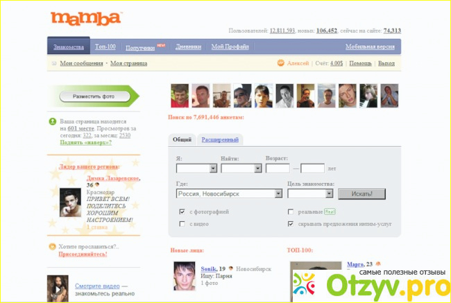 Собственно, о том, что представляет из себя этот сайт. Шапка сайта оформлена достаточно удобно. Есть раздел «Вопросы-ответы», в котором можно самому оформлять вопросы и, таким образом, пытаться завязать знакомство с кем-нибудь, дожидаясь время от времени ответов. На мой взгляд, этот способ является самым быстрым, легким и доступным, чтобы ненавязчиво начать с кем-то общение. Кроме своих вопросов, можно, так же, отвечать и на чужие. Что касается непосредственно поиска, то этим Мамба не отличается чем-то принципиальным от всех остальных сайтов – задаешь параметры поиска и ищешь. Есть так же и дополнительные параметры поиска. В Этом плане создатели сайта подошли достаточно скрупулезно. Это хорошо. Как и на каждом, уважающем себя сайте, есть возможность залогиниться без регистрации, через социальные сети Вконтакте и Facebook. Разумеется, есть возможность лайкать фотографии и даже попадать во всеразличные топы. Без функции доната тоже, естественно, сайт не обходиться. Это поможет вам облегчить прибывание на сайте, если вы настроены решительно засесть и дотошно искать того человека, который может вам подойти. Само собой, присутствует анкета. Это тоже что касается плюсов. Не обязательно же искать человека для романтики, можно найти и просто человека с общими интересами. И, пожалуйста, общайтесь на здоровье. Даже если это общение будет виртуальным. Но это для интровертов. Экстраверты тоже бывают разные, но здравомыслящие будут искать человека для полноценных отношений; поиски для извращений - это удел, в лучшем случае, больных, в худшем – маньяков. Об этом, как не крути, всегда нужно помнить. Оформление сайта выдержано, честно говоря, то ли в какой-то женской манере, то ли… Ну, вы понимаете. Цветовая гамма скорее подходит женщинам. Хотя, возможно, это сделано нарочито – в целях благоговейной атмосферы сайта. Зато можно самому выбирать фон. Правда особым разнообразием обоев этот сайт явно не похвастается. Зато похвастается посещаемостью. Ежедневно туда заходит свыше ста тысяч человек. Соответственно, если вы интроверт, то можете пытать свое счастье среди изобилия женского пола, если вы мужчина или мужского, если вы женщина. Есть там, правда, и представители сексуальных меньшинств и любителей нетрадиционного понимания «любви». Начиная от гомосексуалистов и лесбиянок, заканчивая БДСМщиками или просто озаботками крайней степени. Поэтому, если вы уже и решились, на столь отчаянный шаг как сайт знакомств, будьте осторожны, избирательны и внимательны.