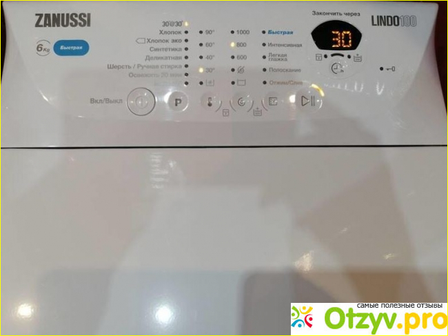 Дисплей не сильно информативный и на него выводится только время до окончания стирки. Подводя итоги скажу, что на мой взгляд «Zanussi» производят одна из лучших стиральных машинок-автоматов с верхней загрузкой белья. Работает всё великолепно! Я очень довольна! Не зря потратила столько времени на изучение и выбор подобной машинки