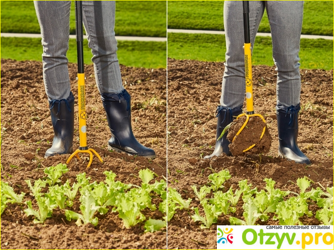 Что еще оказалось удобным, так это возможность регулировать высоту инструмента в соответствии со своим ростом и в зависимости от уровня земли. В этом случае, если правильно подобрать высоту культиватора, можно обработать участок огорода в самые быстрые сроки и при этом не напрягать спину и даже не наклонять ее, как это происходит при работе с лопатой.