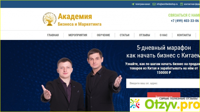 "Академия Бизнеса и маркетинга" как раз и рассказывает о всех секретах создания виртуального бизнеса и Интернет-магазина в том числе. Что мы видим на главной странице? Двух героев и не сильно привлекательный дизайн. Шрифты вроде симпатичные и не режут глаза, но все же...