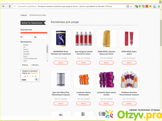 Parfum-Paradise.ru один из крупнейших интернет-магазинов в России, так что здесь совершают покупки многие люди, в больше степени они остаются довольными по той причине, что здесь представлен не только огромный ассортимент парфюмерной продукции, но и так же еще отличный сервис обслуживания, довольно часто бывают как скидки, так и акционные предложения, которые позволяют хорошо экономить, людям нравится, что здесь быстрая система оформления заказов и сама доставка, которая не такая дорогая.