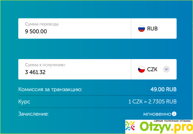 Самым важным преимуществом является низкий процент за услуги перевода. Фиксированная ставка за перевод денег всего 49 рублей за любой перевод из России в любой уголок Европы, так и бывшие республики Советского Союза. Вообщем география отправления довольна широка. И покрывает весь мир, и любой банк. А все потому, что компания имеет собственный карточный процесс перевода и банки-партнеры. Сама система построенная на простоте и удобстве. Разберется даже не опытный пользователь. В системе нужно зарегистрироваться, по своему номеру мобильного. А дальше все проще простого. В форме для перевода выбираете страну получателя, вводите отправляемую сумму и , конечно же, номер обеих карт, и это все для быстрого перевода больше ничего не понадобиться. Вся информация о переводе будет доступна вам еще перед транзакцией, в поле для ввода данных, на экран выводится реальный обменный курс, если вы переводите на валюту другой страны, размер комиссии которую вы оплачиваете и конечную сумму , которую получит адресат . Так что вы сможете откорректировать отправляемую сумму . И знать точную сумму которая будет списанная с карты.