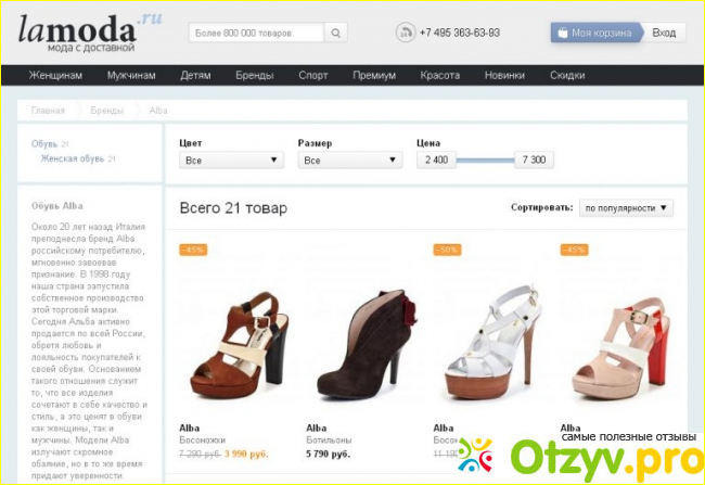 Главным достоинством магазина является то, что на его просторах собраны вещи практически от всех известных брендов. Также хочется отметить. что магазин lamoda грамотно подошел к ценовой политике на сайте. Ведь далеко не все покупатели могут приобретать дорогие вещи и составлять из таких вещей гардероб. Поэтому на сайте можно найти вещи практически в любой ценовой категории.