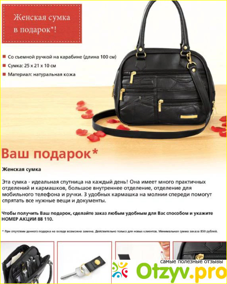 Касательно ассортимента, он довольно обширный, здесь можно найти все начиная с нижнего белья и заканчивая верхней зимней одеждой. С размерами тоже никаких проблем нет, в наличии есть все, однако стоит учитывать при выборе понравившегося товара, что размер нужно переводить с европейского формата на наш, более нам понятный, в общем самое главное это подобрать правильный и в дальнейшем никаких проблем при заказе одежды не возникнет. Также действуют постоянные скидки и различные акции, зачастую по акции можно получить в подарок какую нибудь сумочку или шарфик, а скидки отмечены в каталоге специальными желтыми ценниками. Если говорить немного подробней об акциях то условия там довольно простые, достаточно все лишь совершить покупку на какую то определенную сумму, например на одну тысячу рублей и тогда можно гарантировано получить в подарок по акции представленный аксессуар. Подобные акции и скидки присутствуют в каждом каталоге, и в каждом они разные, то есть суммы для получения подарка в каждом каталоге разные как и сами подарки. Скидки тоже присутствуют в каждом каталоге, бывает даже что на одну и ту же позицию скидка переходит из предыдущего в следующий.