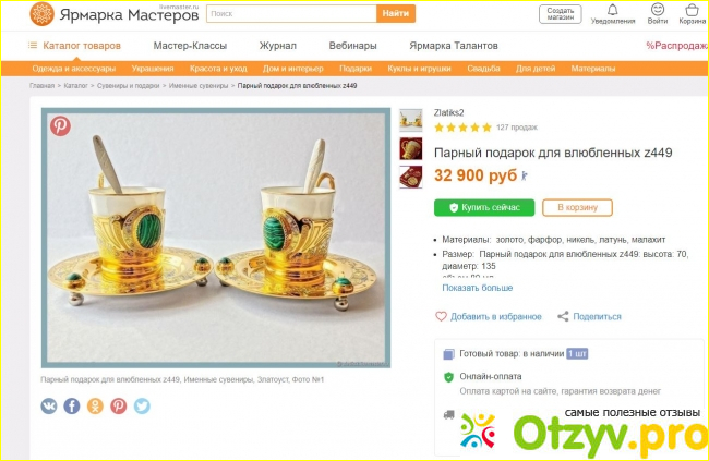 На мой взгляд сайт этот замечательный, я здесь не раз приобретала подарки для своих подруг на дни рождения и свадьбы. Здесь брала специальные перстни с гравировкой для юбилея родителей. Брала не обычные резные кубки для молодоженов. Так что на этом сайте всегда можно найти всё, что только пожелаете. А если что-то не сможете найти сами, разыщите мастера, который вам изготовят необходимое. Я раньше даже не представляла, что у нас так много умельцев в России, которые изготавливают такие великолепные вещи. Так что однозначно советую вам обязательно сюда заглянуть и приобрести для себя что-то красивое, и то, что будет греть душу, когда вы будете на себя это надевать или просто брать в руки. Я сюда захожу просто отдыхать и получить эстетическое удовольствие, настолько много красивых вещей. Одним словом — браво, "Ярмарка мастеров"!