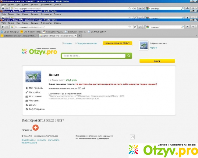 Вел переписку с администратором данного проекта, его зовут Юрий, открытый и честный человек. Раньше я много писал отзывов на других проектах, не собираюсь их рекламировать. Важно то, что там я лишь тратил драгоценное время. Не сказать, что много просмотров собирал, а за сам факт написания получал копейки. После моего знакомства с сайтом Отзывы Про, я увидел существенную разницу. Многие новые пользователи после регистрации не могут написать ни единого отзыва. Я решил написать сразу мини-статью на высокооплачиваемую тему и получил свои первые 80 рублей. На ноутбуке у меня ушло порядка 20 минут времени. За сутки я написал примерно 5 отзывов, тем самым заработав 400 рублей. Друг мой тоже зарегистрирован в системе, я в свою очередь пришел по его реферальной ссылке. Правда многим авторам убрали возможность оставлять отзывы на высокооплачиваемые темы.