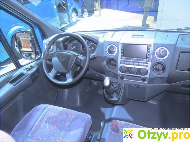 Что качается самой кабины газели то она сильно обновилась в отличии от старой Газельки. Например установлены новые очень удобные сиденья обшиты приятным материалом, так же они имеют подогрев который встроен во все сиденья, а регулировка так же механическая. По центру передней панели установлен бортовой компьютер с достаточно большим экраном на котором так же есть спутниковая навигация и отображается изображение с задней камеры что очень удобно.