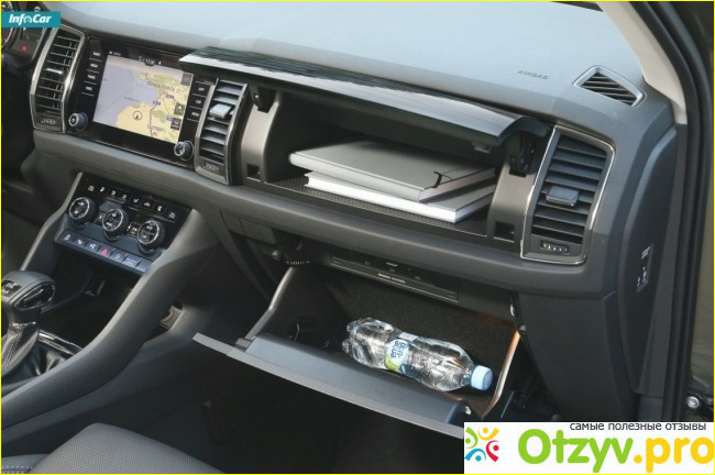 Очень понравилась его передняя панель, имеющая красивый дизайн со всеми встроенными регулировками. Есть 2 вместительных освещаемых бардачка для каких - нибудь мелочей. По центру установлен бортовой компьютер с большим сенсорным экраном с разными дополнительными опциями.