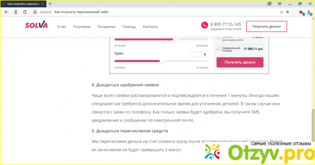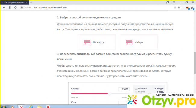 Всем читателям отзыва привет! Сегодня хочу вам рассказать о компании "Solva" которая выдаёт персональные займы онлайн, предпринимателям и частным лицам. Никогда раньше не слышала о данной компании, посоветовала мне подруга, так как мне срочно понадобились деньги. Сумма конечно мне была не маленькая, поспрашивала у знакомых ни у кого не оказалось, и решила взять в займы у компании.