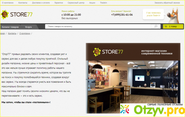 Ну и подведя итог своего отзывы об интернет магазине store77, хочется сказать что это действительно хороший интернет-магазин, сотрудники интернет-магазина, очень вежливый всё очень подробно рассказывают что у них не спросишь. Цены действительно ниже чем в других интернет-магазинах.