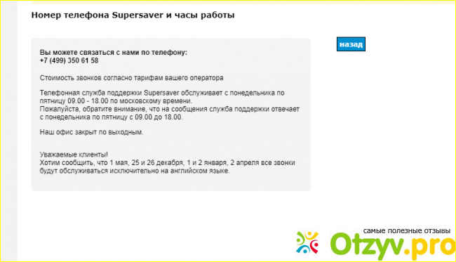 | Сайт: https://www.supersaver.ru/contact | |
