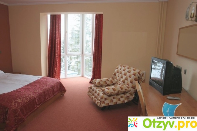 Мы заказали обычный номер для пары с двуспальной кроватью. В нашем номере оказалось, редко кто селился, поэтому окна были всё время приоткрыты, отчего первое время было немного холодно. Сразу слева при входе показалась двуспальная кровать, тумба с телевизором напротив неё, письменный стол с телефоном по левую сторону кровати, торшер с вычурным орнаментом на абажуре, который расположился в углу номера. Также возле тумбы с телевизором стоял средний шкафчик для вещей с множеством отделений, для мелких вещей и больших. Всё очень хорошо открывается и закрывается, ничего не скрипит, не гремит.