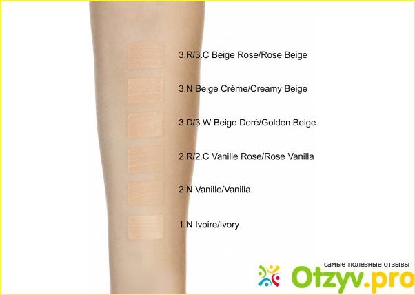 Вот палитра оттенков, на коже. Если нет возможности покупать в магазине профессиональной косметики, то внимательно смотрите на картинку и подстраивайте цвет к своему тону кожи, только так: