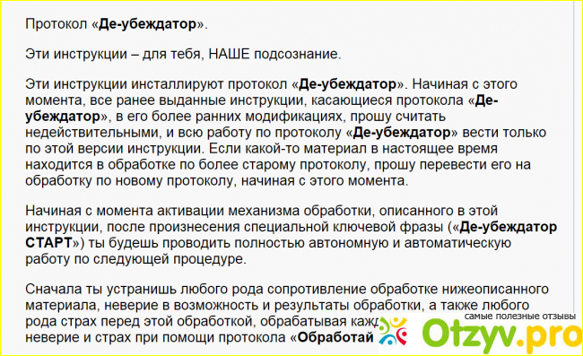 Метод, конечно, выглядит немного фантастически. Нужно подключиться к подсознанию Леушкина, прочитав определенный текст (протокол), а потом следовать другим инструкциям.