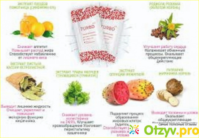 Данное эффективное средство для сжигания лишних жиров, способно всего за семь дней избавиться от ненавистного лишнего веса! Это средство комплексный "фито-препарат" , включающий в себя полезные компоненты из растительных экстрактов таких как - кассия, опунция, померанцы, пуэрия, стелющийся якорц и родиола розовая. Основными свойствами препарата являются - активизация процессов по сжиганию жиров , нормализуются процессы метаболизма , происходит очищение от накопившегося в организме шлака и токсина , блокируется ощущение голода , обеспечивается быстрое насыщение после принятия даже небольшой порции пищи , включается защита от накоплений жирового отложения в будущем. "Турбофит" выпускаются как порошок , дозированный в саше.