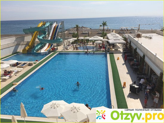 Мы в сентябре месяце с супругой после нашей свадьбы решили отдохнуть в Турции, поэтому обратились за помощью в выборе отеля в местное туристическое агентство. На большую сумму мы рассчитывать с супругой не могли, так как свадьба отняла у нас достаточное количество денег. Нам предложили несколько вариантов отдыха за определенную сумму и мы выбрали именно данный отель. Нам его так хорошо описали и порекомендовали, мол там отдыхает преимущественно молодежь, но по факту вышло совсем иначе. Да, порадовало бесспорно, что отель расположен на первой береговой линии, имеет шикарный бассейн с водными горками, правда их включали всего лишь один раз в сутки.