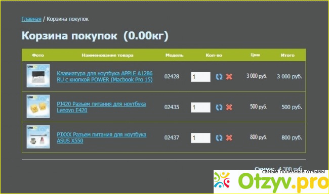 Здесь можно выбрать количество товаров, отменить те варианты, что вам не подходят и узнать общую стоимость заказа. После всего прочего можно уже оформлять заказ, но для этого нужно быть зарегистрированным пользователем.