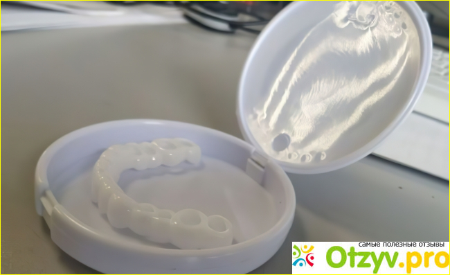 После долгих поисков в интернете заметила, что виниры от компании TruSmile продают многие интернет-аптеки и просто сайты. При этом хватает и негативных отзывов, но, как я поняла мошенничество в этом бизнесе расцветает очень сильно. Часто за них просят больше 4000 рублей, а где-то наоборот 450 рублей. На мой взгляд в обоих случаях полный развод. Нашла в одном месте по цене 1140 рублей, да и сайт мне показался достойным доверия. Заказала и через какое-то время они были доставлены курьером. Пришла коробочка с небольшим футляром круглой формы, там же находились и все необходимые приспособления включая щётку с пастой и таблетку для очистки. После двух месяцев применения могу уже сделать определенные выводы. Элитной такая конструкция не выглядит, они действительно размягчаются в горячей воде, но не скажу, что сидят на зубах как влитые, в принципе для ношения подходят. Дискомфортных ощущений не вызывают, но и носить их постоянно невозможно. За всё это время не удалось избавиться от ощущения постороннего предмета.