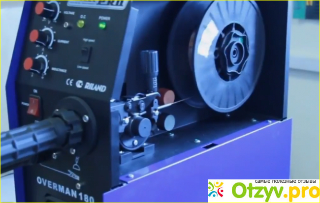 Расскажу немножко во внутренностях. Хочется отметить отдельно механизм подачи проволки. В механизме применен обычный стандартный зажим. В штатной комплектации, есть ролик, который позволяет пропускать проволку диаметром 0.6 – 1.2 мм. Мне этого хватает вполне. Механизм подачи проволки сделан качественно, отличается надежностью и удобством заправки проволки. Ни разу за все время эксплуатации он не подводил.