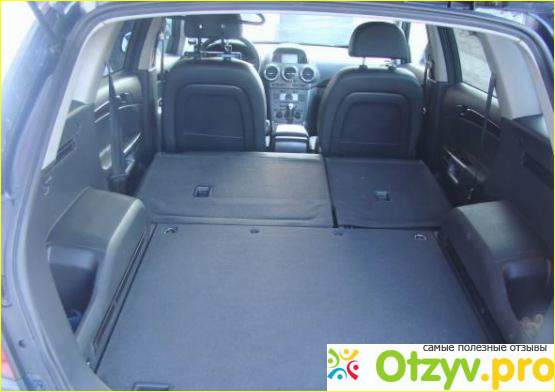 Багажник в этой машине объемами не блещет, тесноват. Общий объем примерно в 370 литров. Но проблема решается раскладыванием задних сидений – при этом в сумме можно получить более 1400 литров, что позволяет перевозить крупногабаритные грузы, в случае необходимости. Правда вот, в багажнике дверь приходится открывать целиком, в Каптиве в этом плане получше.