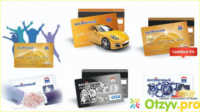 Весь мир работает с банковскими картами, Восточный Банк этому не исключение. Поэтому дает возможность оформить даже 5 видов дебетовых карт. В их числе например: